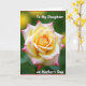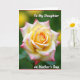 This card features a single rose centered on the front, drawing the eye like a quiet gift of affection ❤️. The bloom opens from a warm yellow center into creamy white petals, and the outer edges carry a gentle blush of pink that feels like a soft, friendly touch. Each petal looks velvety and slightly curled, as if the flower is leaning in close for a tender moment. Behind it, the background fades into a smooth blur of leafy greens with hints of golden light, keeping the focus on the rose. Near the top, a short Mother’s Day message appears in small, light-colored lettering, spaced neatly so it doesn’t crowd the flower 🌼. A second, smaller line of text sits near the bottom in a matching tone, balanced with the stem and lower petals. The image is framed with plenty of open space around the bloom, and the rose’s pink-tipped petals stand out against the soft green backdrop.