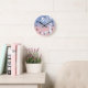 Let the decorator in you come out! Wall clocks are an inexpensive and beautiful addition to any room. This pretty clock uses the on-trend colors of rose quartz and serenity blue, with a white flower accent. \