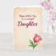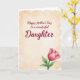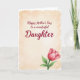 Designed with a soft, vintage look, this Mother’s Day card centers on a loving message that feels like a warm embrace ❤️. Across a textured cream background, the main line reads “Happy Mother’s Day to a wonderful Daughter,” set in deep crimson lettering that stretches gracefully from left to right. The word “Daughter” appears larger than the rest, drawing attention the way a close bond stands out in a family. The background has gentle, watercolor-like shading and slightly uneven edges, giving it an aged-paper feel that adds quiet tenderness. In the lower right area, a single flower blooms as if offered with care, suggesting affection through its delicate shape and calm placement. Small details keep it gentle and friendly, including the soft contrast between the red text and the warm neutral paper 🌼. The flower shows layered pink and rose-red petals with a green stem and leaves dotted with tiny white specks.