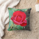 Vibrant red rose decorates comfy throw pillow. Lovely floral style for home or office decor.
