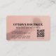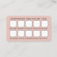 Custom business card featuring pink rose shadow design with sans-serif typography, and classic reward system on the back for customers to receive something, i.e. discount, free item, etc. Click 'Personalize' to add your company details, including name, type of service, phone number, website, address, qr code with text, store hours, additional info, and reward system on the back.