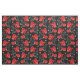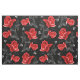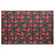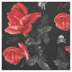 This decorative design has a stylized rose from vintage illustrations, and little skulls. Red and black floral pattern.