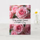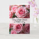 This card features a close-up of many soft pink roses, with layered petals that feel tender and romantic as they nestle together ❤️. The center blooms are in sharper focus while the surrounding flowers fade into a gentle blur, like a quiet moment shared between loved ones. A translucent white banner runs horizontally across the middle, creating a calm space for the message. The text sits centered on the banner in a flowing style, written in a medium pink that matches the petals. Above the banner, one rose shows a tight spiral core of deeper pink that softens outward into a pale blush, highlighted by diffused light that makes the petals look velvety. Below the banner, another rose appears slightly softer in focus, adding depth and a warm, affectionate feel 🌼. The background stays muted and darker, helping the pink blooms stand out around the crisp, white band. The banner is straight and semi-sheer, cutting cleanly across the clustered roses.