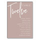 Rose Taupe Hand Scripted Table TWELVE Guest Names Number