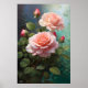 An artistic poster illustrating the natural beauty of roses in an oil painting style