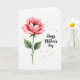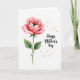Designed with a delicate botanical look, this card features a large, full-petaled flower along the left side, painted in soft coral and blush pink that fades to creamy white at the edges. Near the center of the bloom, deeper crimson tones draw the eye like a tender, close-held secret ❤️. A sturdy green stem and a few gently curling leaves add a grounded, natural contrast, as if the flower is leaning in for a quiet moment of affection. The background stays bright white, giving the artwork plenty of breathing room and keeping the focus on the bloom. On the right side, small clusters of golden specks scatter like a soft celebration, adding warmth without crowding the space 🌼. A short message appears in the middle-right area in flowing, elegant lettering, set in a dark gray tone that stands out clearly against the white. The gold flecks are concentrated mostly on the upper-right and mid-right, tapering lightly toward the lower-right edge.
