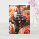 This card features a clear wine glass filled with deep ruby-red liquid as the main focus, glowing softly at the center ❤️. On the front of the glass, white lettering reads “Happy Mother’s Day to a wonderful wife,” placed so it stands out against the dark drink. Around the glass, a cluster of roses in peachy orange and creamy blush tones creates a gentle frame, like a bouquet set close for an intimate moment. The lighting is diffused and calm, giving the scene a romantic hush, as if someone has just set the glass down with a tender glance nearby. Many of the petals sit slightly out of focus in the background, which draws your eye back to the message on the glass. Subtle reflections along the glass add sparkle and depth, echoing the soft curves of the flowers 🌼. Behind the glass, the blurred roses form a warm, pastel backdrop with layered petals and delicate highlights.