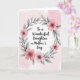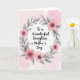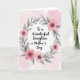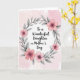 This greeting card features the message “To a Wonderful Daughter on Mother’s Day” centered on the front, set against a soft, pale pink watercolor-style background that feels gentle and affectionate ❤️. The words sit neatly in the middle, with the main line in a darker tone for easy reading and “Mother’s Day” standing out in a slightly deeper pink. Surrounding the text is a rounded floral wreath that draws your eyes inward like a caring hug, suggesting closeness between parent and child without showing any people. The wreath is filled with layered blossoms in warm pink shades, from light rose to deeper magenta, giving the flowers a romantic, friendly glow 🌼. Tiny metallic gold touches appear at the centers of many blooms, adding a subtle shimmer against the soft petals. Charcoal gray leaves and slim branches weave between the flowers, their cool tones balancing the warm pinks and making the wreath feel airy rather than crowded. The foliage is shaded in cool gray with thin, flowing stems that loop around the circle in an organic, embracing shape.
