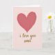This greeting card features a calm, romantic layout centered on a classic symbol of affection ❤️. A large heart sits in the upper middle, painted with visible brush-like texture and slightly uneven edges that feel tender and human. The heart is a muted, warm rosy red that stands out gently against a soft blush-pink background. Beneath the heart, a short message is placed in the lower center in flowing cursive-style lettering, suggesting a loving note shared between close partners or dear friends. The text appears in a golden, glitter-like finish that adds a soft sparkle without overpowering the simple design 🌼. The contrast between the textured heart and the refined, shimmering letters creates a quiet sense of closeness, like a private moment captured on paper. The background remains a smooth, monochrome pink field with plenty of open space around the heart and the gold message.