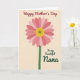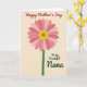 This card features a large, stylized flower centered on a warm beige background, with wide petals fading from soft rose to blush pink for a gentle, affectionate look ❤️. The flower’s center is a rich yellow with a darker olive-green middle, drawing your eye like a warm hug held in place. A slim green stem drops straight down, giving the composition a calm, steady balance. At the top, a short Mother’s Day greeting sits in flowing maroon lettering, spaced comfortably above the bloom. In the lower right, the word “Nana” appears larger in deep forest green, like a quiet signature that feels close and familiar 👩. The smooth shading on each petal adds depth without feeling busy, and the open bloom suggests a tender, welcoming gesture. The maroon headline and green dedication echo the flower’s center and stem, tying the text and artwork together. The final detail is the yellow core speckled with texture around the olive-green center, framed by softly shaded pink petals.