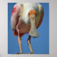 Closeup roseate Spoonbill (Platalea ajaja) seen from front with its big beak on blue sky background
