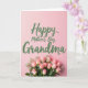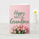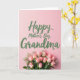 On the front of the card, a celebratory line of text stretches across the upper area in flowing lettering, colored a deep emerald green. The background is a soft pastel pink that gives the whole scene a gentle, rosy glow. The lettering arcs smoothly, leaving open space beneath it so the design can breathe. In the lower third, a full bouquet of blush-pink rosebuds gathers close together, some still tightly closed and others just beginning to open, like a quiet promise of affection ❤️. Tucked among the roses are tiny white blossoms sprinkled like little stars, adding a light, friendly softness 🌼. Deep green stems and leafy sprigs weave through the arrangement, grounding the pale pinks and whites with natural contrast. The overall look feels calm and tender, as if the flowers are leaning in toward the message at the top. The bouquet sits centered along the bottom edge, with the brightest rosebuds clustered near the middle.