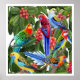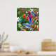 Original fine art design of colorful Australian Rosella parrots including Eastern, Western, Adelaide, Pale Headed, Crimson and Yellow varieties by designer Carolyn McFann of Two Purring Cats Studio on a quality poster print for bird lovers.