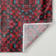 A complex, symmetrical pattern covers the entire space, featuring intricate red and blue geometric shapes. The repeating design creates a mesmerizing, kaleidoscopic visual effect.