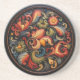 I'm not sure how much moisture these will soak up, haven't had a chance to try them out, but they look good and I like the cork backing. The printing is fine ~ and really looks cool with an artisan's hand made "Hurricane Martini" glass sitting on top of my painting (on the coaster) in my studio.