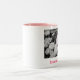 Tall coffee mug with photo of a pink rose against a black & white background. Enscribed with "Roses always bloom." Matching gift items available including greeting card, stickers, magnets and more.
