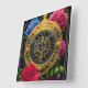Beautiful roses in red blue and pink surrrounding a gold filigree clockface