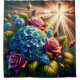 “Roses and Hydrangeas with Cross - Spiritual Art" Shower Curtain