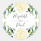 Seal your invitation envelopes or favors with these beautiful watercolor floral wedding stickers featuring watercolor yellow roses, olives and foliage. Your names are written in a mix of block and hand written calligraphy typeface.