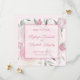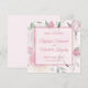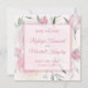 Announce your upcoming wedding date with modern elegance. The pink roses and greenery fills the background, while an overlay is centered displaying the couple's names, wedding location, and date. Behind the save the date info is a glimpse of the floral background.