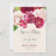 A bright, bold floral of roses in shades of burgundy and cream is the focal point for many of the pieces of this wedding suite that also features elegant script text and modern design layouts. The matching 'Save the Date' card shown here features all of the above as well as a beautiful watercolor abstract on the reverse in rich burgundy and plum. Search ID584 to see all the matching products with this design.