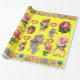 ROSES,FLOWERS,FEATHERS,ANGELS AND HEARTS IN YELLOW WRAPPING PAPER