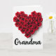 On the front of the card is a heart shape made from many red roses, set in the middle of a white background. The roses look full and soft, with petals that shift from bright red on the edges to deeper red in the shaded centers. Small touches of green leaves peek out between the flowers, adding a natural detail without taking attention away from the heart. Gentle lighting creates light shadows, so the rose heart feels a little raised and more real. Under the heart, the word “Grandma” appears in black, written in a flowing cursive style near the bottom of the card. It turns the design into a clear message of love and appreciation, perfect for someone who’s always been there. Giving this card feels like a simple way to say “you’re loved” with real warmth 🥰❤️. Hope it helps you share Valentine’s Day feelings with someone special.