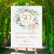 Featuring a delicate watercolour floral greenery watercolour garland, this pretty elegant botanical 50th wedding anniversary welcome sign can be personalised with your special golden anniversary information in chic gold text. Designed by Thisisnotme©