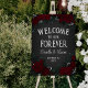 Welcome your guests to your dark romance wedding, to your forever, with this welcome wedding sign with very very dark red roses and greenery, baby's breath, and vintage fonts.