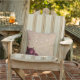 Made with outdoor fabric, this pillow has lovely vintage roses.