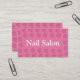 A simple pink business card features a pattern of roses. Perfect for nail salon, makeup stylist or artist, cosmetics business, beauty salon.
