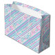 A pretty Large Gift Bag, with a pattern of pink, sky blue and white diagonal Deckchair stripes and Pink Roses. Part of the Posh & Painterly 'Summer Days' collection, this pattern can be adjusted to fit any Gift Bag.