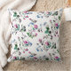 Roses - Pink Roses & Blue Flowers Over White Throw Pillow