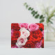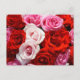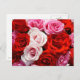 A postcard featuring roses in red, pink and white. Perfect for rose lovers.