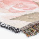 A quality printed throw has its advantages. This is a much finer weave throw than its loopier cousins, and though lighter, it is worth the investment for custom room accessorizing. The back is much prettier than the typical brown, and the fringe on the long sides very vivid, the selvage nicely done. Before photographing, I washed the throw in cold water, delicate, with a thicker woven throw the same size. On tumble dry low, this throw was dry in half the time as the other. This is a very practical quality if you use throws for furniture covers or to wrap up in frequently. The sleekness of the fabric makes it a great layer for accenting or protecting without the feeling of sitting on too much stuff. Perfect for napping or when you feel a light chill coming on. The color printing is beautiful and on this fabric, matched the design and color of my Photoshop image. This is an advantage for blending room fabrics and colors. The fringe on the short sides prints the colors from the design image and therefore varies from the side fringe. I streaked a white fractal line through the plaid pattern to give the illusion of weaving. This printed as crisp as an illusory thread, and put some white in the short side fringe, showing another advantage of print vs loomed- for artistic purposes, line lines, detail, and color integrity can be planned and preserved. My loomed throws have color limitations and more of a needlepoint texture. Print throws reproduce an exact image. The throw felt a little stiff straight out of the package, but this went away in the first delicate wash. Of course I searched the wash water for ink or bleeding and there was none.