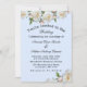 An attractive wedding invitation, on light blue background, bordered on the upper and lower edges with white roses in full bloom tinged with a dash of yellow and surrounded with greenery, buds, and a generous array of small pink roses. The text field on this product is fully customizable so go ahead and edit accordingly to make it your own.