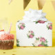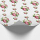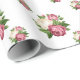 This wrapping paper is shown with a lovely pink roses print on a white background.