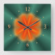 A pretty clock design with a red orange rosette center and green border.An Illuminated effect has created a lemon tinge. Lemon numerals complete this great kitchen wall clock. Available in square or round shapes.