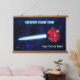 A bit of fun for kids at Rosh Hashana. A pomegranate spaceship streaks through the cosmos. Flame pours from its calyx which serves as exhaust nozzle. Navigation lights flash; the blue and white Star of David roundel, and Hebrew text reading, "Rimmon 1" (Pomegranate 1) are also seen. Customize by adding your own additional text.