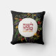 Rosh Hashanah Colorful Floral Wreath Throw Pillow with pomegranates and honey against a dramatic black background. Shanah Tovah in HEBREW. Jewish New Year wishes. Includes the English text "Wishing you a Sweet New Year• Shanah Tovah" Set a festive holiday tone in your home. A beautiful way to wish friends and family a Happy and Sweet Jewish New Year. With space to personalize with your message & name on the reverse .If you would like to see a custom variation of this design please email bestdressedbread@gmail.com. We love to collaborate