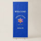 Stylish Israeli blue ROSH HASHANAH Jewish New Year vertical retractable banner, showing a Star of David with a bowl of apples and a dish of honey. Above is the main WELCOME heading, followed be the greeting L'SHANAH TOVAH, written in white and faux gold typography, followed by ROSH HASHANAH in Hebrew text at the bottom and the greeting SHALOM. TEXT IS CUSTOMIZABLE, so you can create your own preferred text and spellings (eg. Shana Tova) and add your family name and other text, with the easy-to-use templates. Matching home decor, party supplies and gifts are available. Choose from a wide selection of stylish, customizable Jewish celebration cards and gifts designed by Berean Designs.