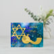 Customize the text on the back of the card to add your own words of blessing and good wishes for the New Year. Buy the cards in bulk to send to your family and friends. The real gold foil of this card adds a touch of class and elegance befitting with these holy days. The gold foil accents and vivid color printing of this card is so impressive that many choose to frame these cards and display them during the holiday season. L'shanah Tovah!