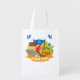 I own a lot of reusable grocery bags, but this one holds its box shape and simply stands up on its own even if there is nothing in it. Its stiffer than your regular reusable bag too, and the material is water resistant. I poured water on the exterior and it didn't penetrate inside to the other side. I'm buying a couple more. Wish I knew how durable these bags were or I would have purchased a few more with my initial order. I also like how it folds and buttons up when not in use, making it easy to put into a handbag or luggage. I haven't used this bag yet, as I purchased it for travel use, like when you're at the airport and need to small sturdy bag to place any airport purchases in, like food, souvenirs etc. I can tell you when you first see this bag, it looks very cheap, but after closer inspection of the material and the seams its a very sturdy reusable bag. I tested it out by putting some really heavy objects inside and I could not observe any stress to the bag at all. Another thing I like about it, is the fact the medium size that this is makes it easy to just carry it in your hand without the bottom of the bag scraping the ground, like most other bags do when you're short. That alone, deserves 5 stars. I just wish there were more colors to choose from! The PDX Airport Carpet printing looks just like the photo, and using this bag during travel might be a conversation piece when/if a native from Oregon happens to see it.