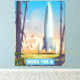 Ross 128 B Science fiction poster of a rocket ship sitting on the surface of the planet during a alien setting sun.