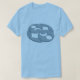 Blue perspective view "Roswell Rock" crop circle design t-shirt. Looks best on white, light blue or navy color shirts.