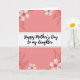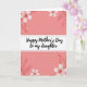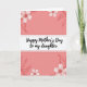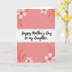 Designed with a soft coral-pink background, this card sets a gentle, affectionate tone that feels like a warm hug between close family members ❤️. In the center sits a wide white horizontal banner with rounded corners, edged by a thin rosy border that gives it a tender, polished frame. Across the banner, the message “Happy Mother’s Day to my daughter” appears in thick black lettering, centered and easy to read. Light blush floral drawings decorate the top and bottom edges, suggesting a caring touch, like flowers chosen with someone special in mind 🌼. The blossoms and leaves are outlined in a deeper rose, adding contrast while keeping the overall look calm and sweet. The floral clusters curl in from the corners, guiding your eyes back toward the message as if the design is gently holding it in place. A soft, diffused look across the background keeps the colors smooth and soothing, with the flowers appearing mainly near the upper and lower margins. The white banner spans the middle of the card, with rose-toned blooms and leafy stems framing it from the corners.
