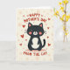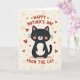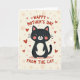 This card shows a cute, stylized cat in deep charcoal black with a bright white belly, facing forward with wide eyes and rosy cheeks that suggest a tender, affectionate mood ❤️. Thin whiskers and a softly defined muzzle give the character a gentle, friendly look, as if it’s quietly sharing a sweet moment with someone close. Above the cat, bright red lettering sits in a curved line near the top edge, and a matching red phrase appears below the cat near the bottom. The background is a warm cream tone, keeping the scene cozy and calm while letting the darker cat stand out. Around the cat, small hearts in shades of red and pink float like little love notes, some with a faint sparkle effect that catches the eye. Pale paw prints and tiny dots are scattered between the hearts, adding a light, companionable feel 🌼. The overall palette stays mostly to black, white, cream, and reds and pinks, and the hearts include subtle textured highlights against the cream background.