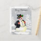 Rosy Cheeked Snowman With Top Hat Coat and Mittens Postcard