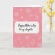 Designed with a soft rosy pink background, this card centers a white rectangular panel shaped like a vintage ticket with scalloped, perforation-style edges. A thin dotted line runs just inside the border, framing the message and giving it a cozy, keepsake feel ❤️. In the middle, the text reads “Happy Mother’s Day to my daughter,” set in flowing black lettering, with the lines stacked neatly and aligned to the center. Small yellow dash marks sit to the left and right of the second line, like little sparks that echo a gentle, affectionate exchange. Behind the panel, white outline drawings of flowers, star-like blossoms, and leafy sprigs repeat across the pink field, creating a garden-like setting that feels close and caring 🌼. The contrast between the crisp white panel and the warm pink backdrop makes the words easy to read while keeping the mood tender and friendly. The floral outlines vary in size and spacing, with multi-petal blooms and curved stems scattered evenly across the background. The final look shows white botanical line art drifting over rosy pink, with the ticket-edged panel standing out at the center.