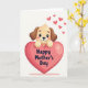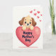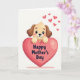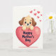 This card features a cute, light-furred puppy with big, gentle eyes and a soft blush on its cheeks, leaning forward as if sharing a shy, affectionate moment ❤️. Its slightly tousled head fur and floppy warm-brown ears frame a friendly face that feels like it’s looking right at someone it cares about. The puppy peeks over a large, puffy heart in the center, shaded in a smooth gradient of rosy pink tones with subtle highlights and shadows for a rounded look. Across the front of that heart, a short Mother’s Day message sits centered in thick, easy-to-read lettering, shown in a dark contrasting color against the pink. The background stays bright white, keeping the focus on the puppy and heart while giving the scene lots of breathing room. Near the upper right, several smaller red hearts float upward like a trail of affectionate thoughts drifting into the air 🌼. Soft lighting and gentle shading add depth to the puppy’s face and the heart’s curved edges. A cluster of tiny crimson hearts rises diagonally from the heart toward the top-right corner.